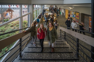 Darüber hinaus unterstützen wir die Schülerinnen und Schüler auch bei der beruflichen Orientierung: Ab der 8. Klasse führen alle Schülerinnen und Schüler ein Berufsportfolio, in dem sie ihre berufskundlichen Bemühungen dokumentieren. Alle Neuntklässler absolvieren verpflichtend ein 14-tägiges Betriebspraktikum, das vor allem im Deutsch- und Sozialkundeunterricht vorbereitet und dessen Ergebnisse anschließend auch der Schulgemeinschaft präsentiert werden. Doch auch in anderer Hinsicht kommt der Mittelstufe eine besondere Stellung zu. Die Schülerinnen und Schüler befinden sich in einer Lebensphase, in der sie enorme physische und psychische Veränderungen durchlaufen; die eigene Identitätsfindung und soziale Orientierung spielen eine wichtige Rolle.Deshalb hat für uns auch in der Mittelstufe die individuelle pädagogische Betreuung einen hohen Stellenwert. Wichtig ist uns dabei, die Bedürfnisse der Jugendlichen ernst zu nehmen, aber auch Grenzen zu setzen und deren Einhaltung einzuüben. Die enge Zusammenarbeit mit dem Elternhaus ist dabei ein unabdingbarer Bestandteil unserer pädagogischen Arbeit.