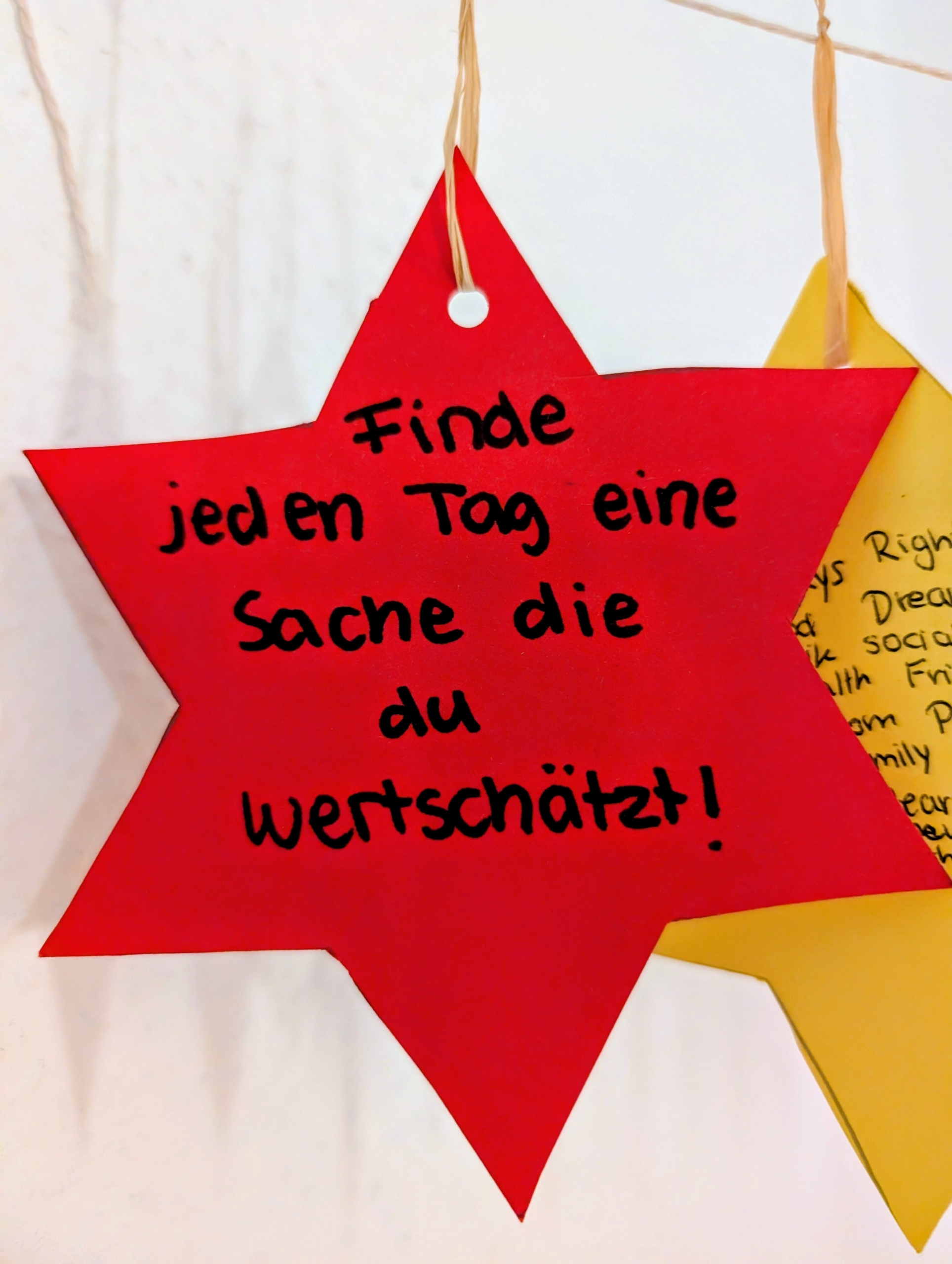 Nun wird der besondere Geist der Wertschätzung an unserem RWG sogar zum Weihnachtsschmuck: Die Schülerinnen und Schüler gestalten individuelle Weihnachtsbaumanhänger und schreiben darauf Dinge, die sie wertschätzen. Diese liebevoll gestalteten Botschaften zieren unseren Schul-Weihnachtsbaum und erinnern uns daran, wie wertvoll ein achtsamer Umgang miteinander ist.
