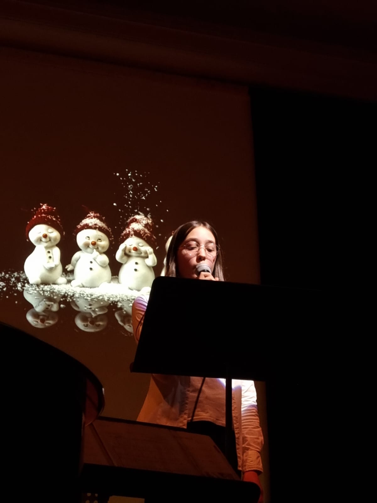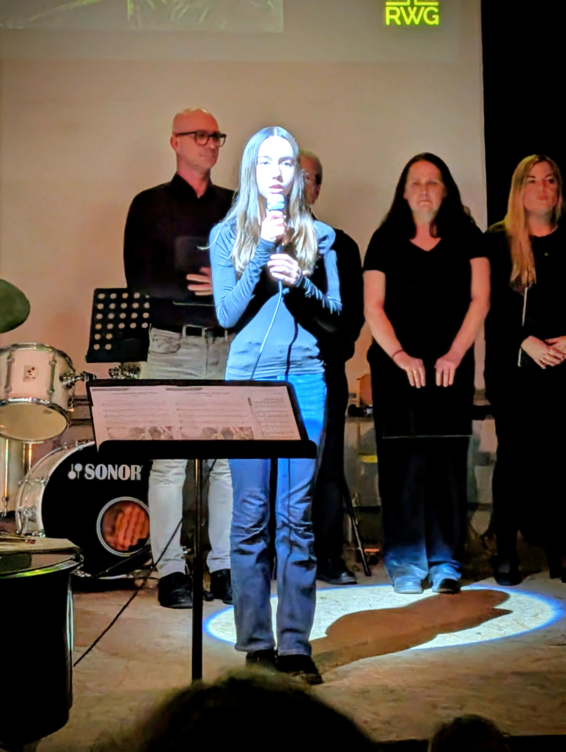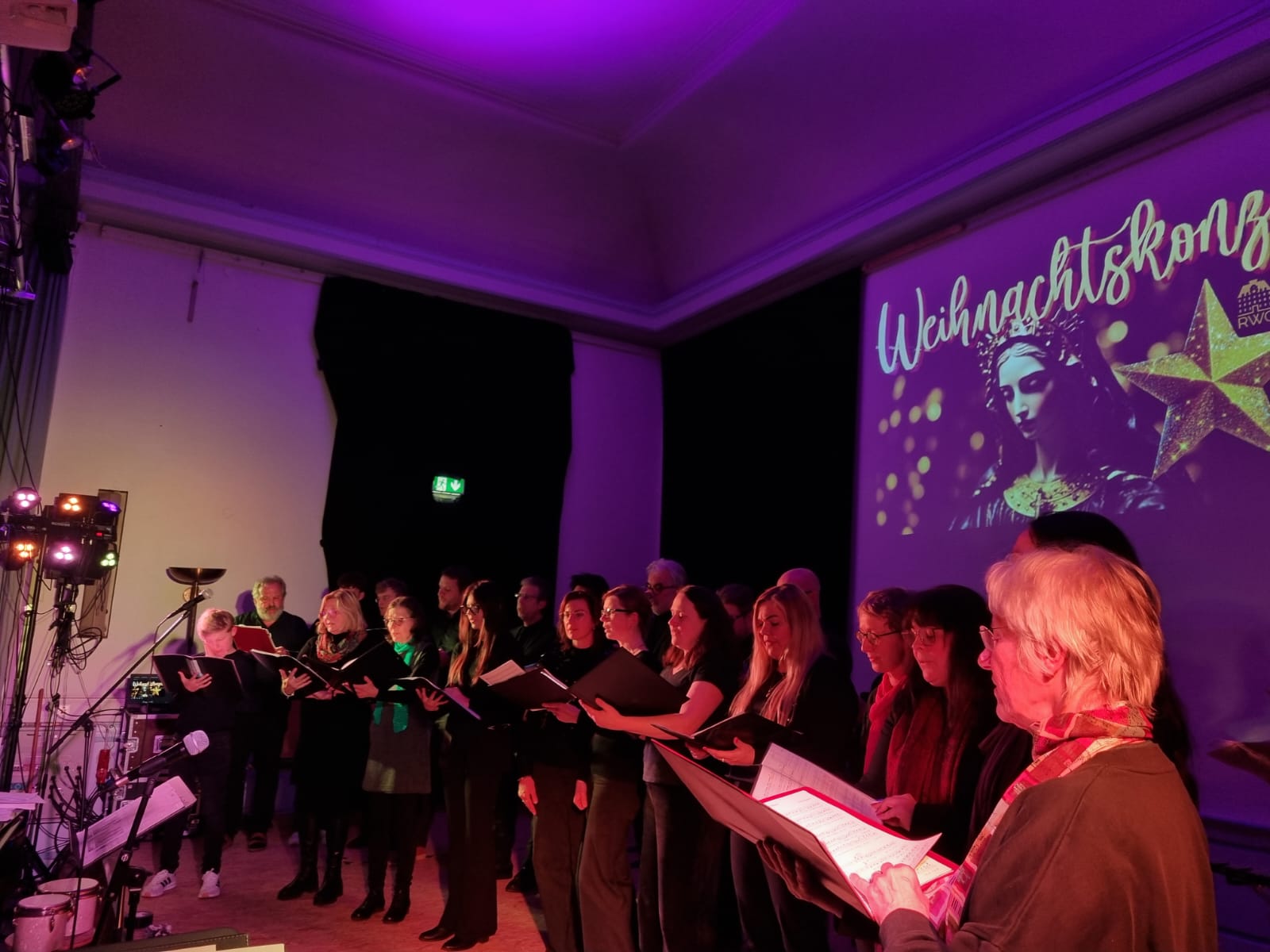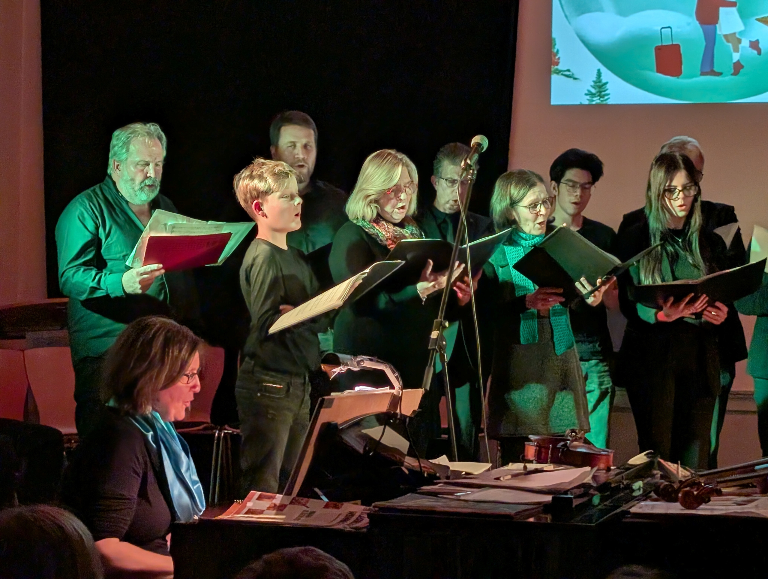 Den krönenden Abschluss bildete das gemeinsame Singen von „Alle Jahre wieder“, bei dem auch das Publikum herzlich eingeladen war, mitzusingen – ein bewegender Moment gelebter Schulgemeinschaft. Stimmungsvolle Hintergrundprojektionen von Jochen Settili sowie die souveräne Unterstützung der Technik-AG mit Adar Ekinci, Lukas Stanke, Oskar Gögler und Jochen Settili trugen wesentlich zum Gelingen des Abends bei. Auch das liebevoll gestaltete Werbeplakat von Beverley Bauer und Julia Hildebrandt sei an dieser Stelle gewürdigt.