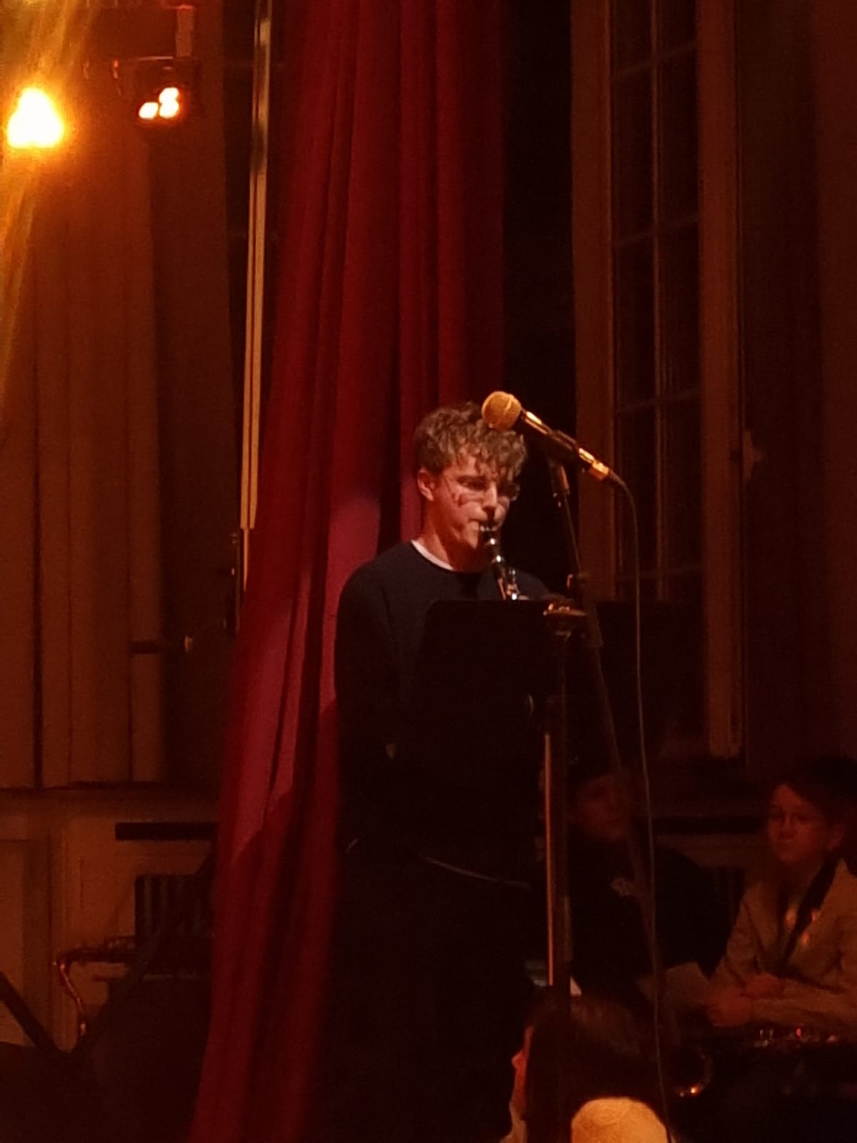 Der Eltern-Schüler-Lehrer-Chor sorgte mit traditionellen und modernen Weihnachtsliedern wie „Away in a Manger“, „Weihnachtsstern“, „Ding Dong Merrily on High“, später auch „I’ll Be Home for Christmas“ und „Joy on Christmas Morning“ für eine warme, festliche Atmosphäre. Auch das Streicherensemble mit Salma Saghir, Laila Merghad und Elisabeth Ackerschott bereicherte den Abend mit „Fröhliche Weihnacht überall“ auf besonders klangvolle Weise. Ein weiteres Highlight war der Auftritt der Musical-AG unter der Leitung von Katharina Fölster, begleitet von Jochen Settili am Saxophon. Mit „Come and Blow, Winterwind“ und „Rocking Around the Christmas Tree“ brachten sie Schwung in die Aula. Musikalische Raffinesse zeigte zudem das Klarinetten-Duo von Daniel Mohr und Jochen Settili mit einem Werk von C. Ph. E. Bach.