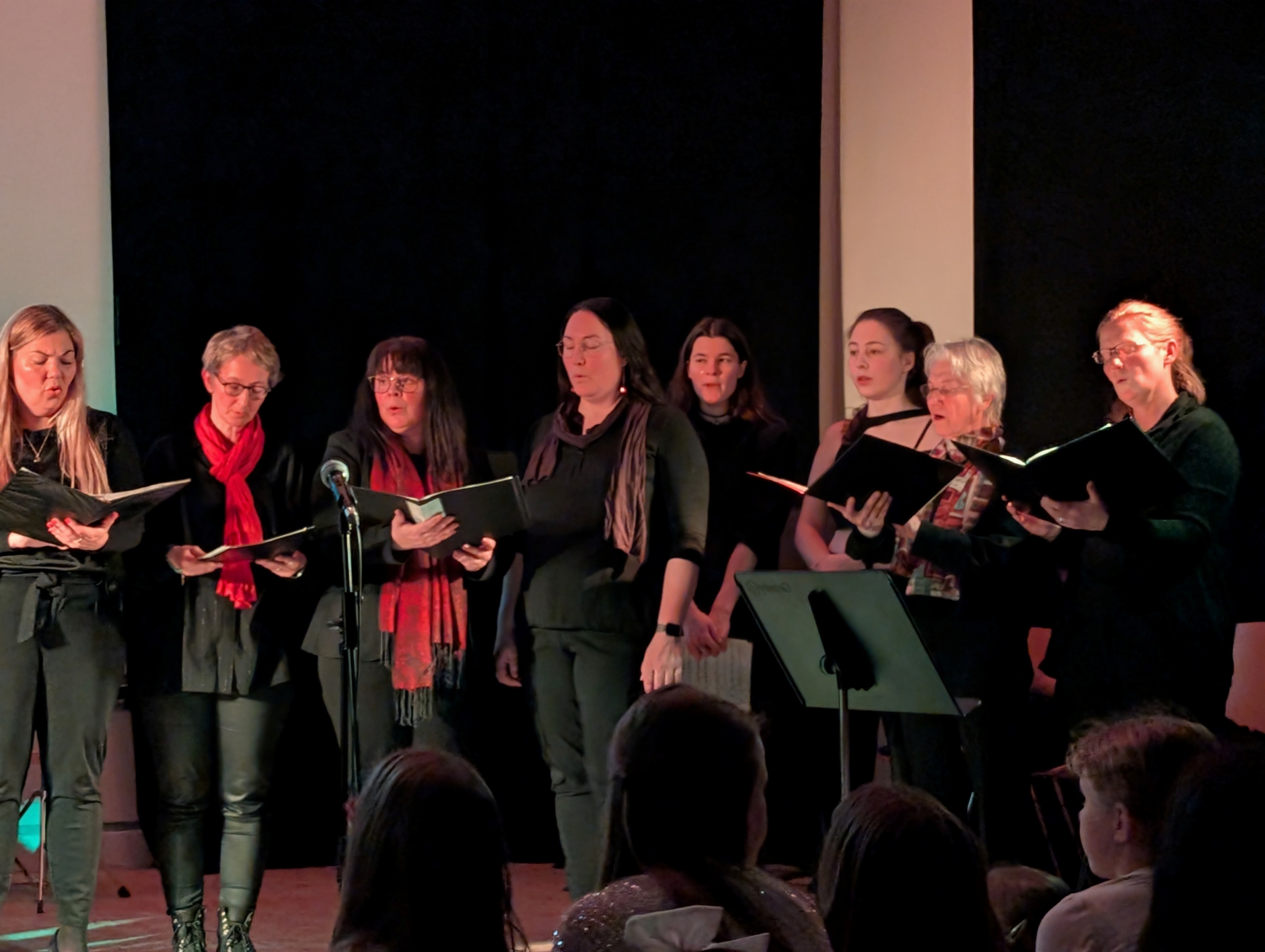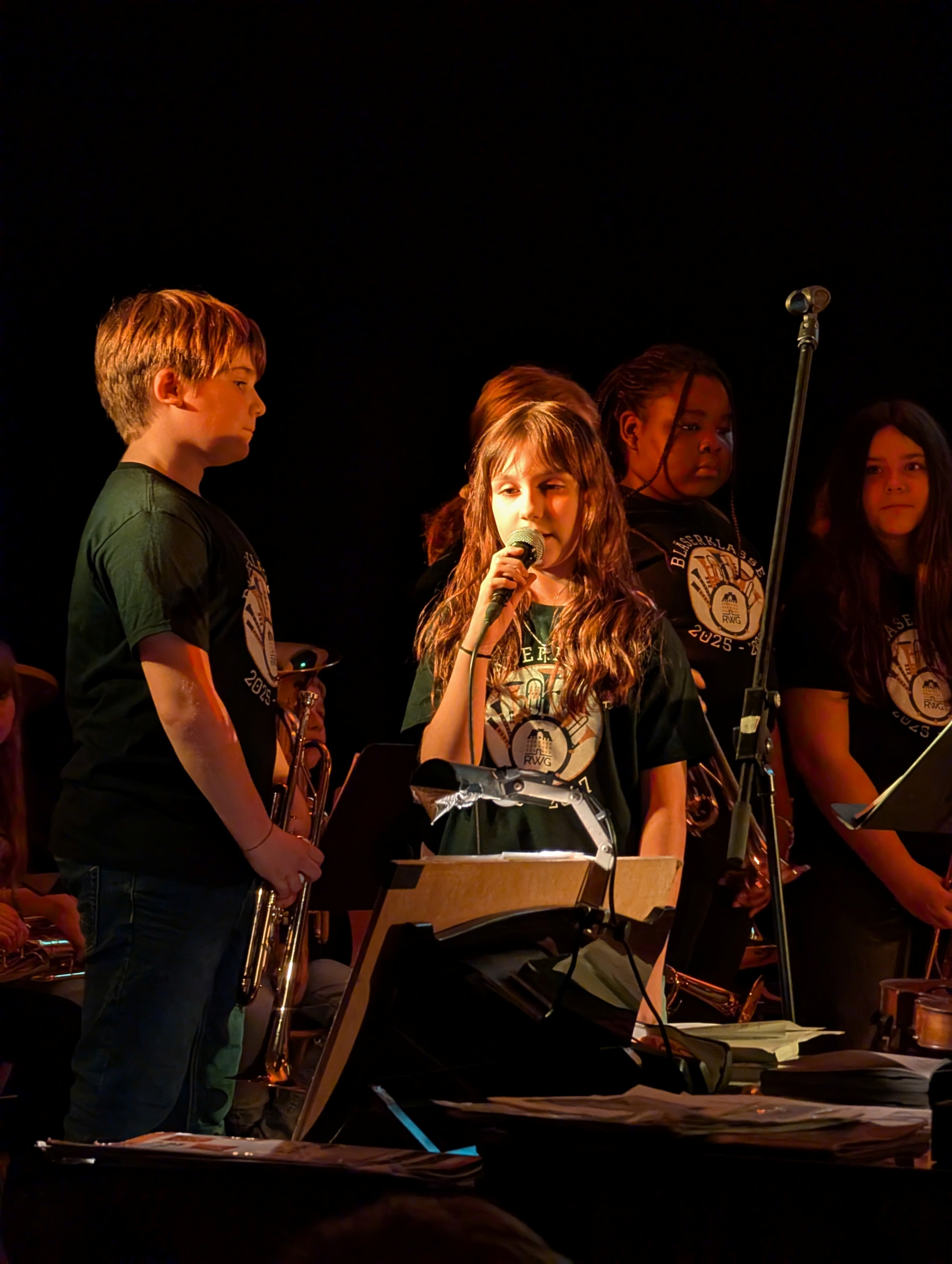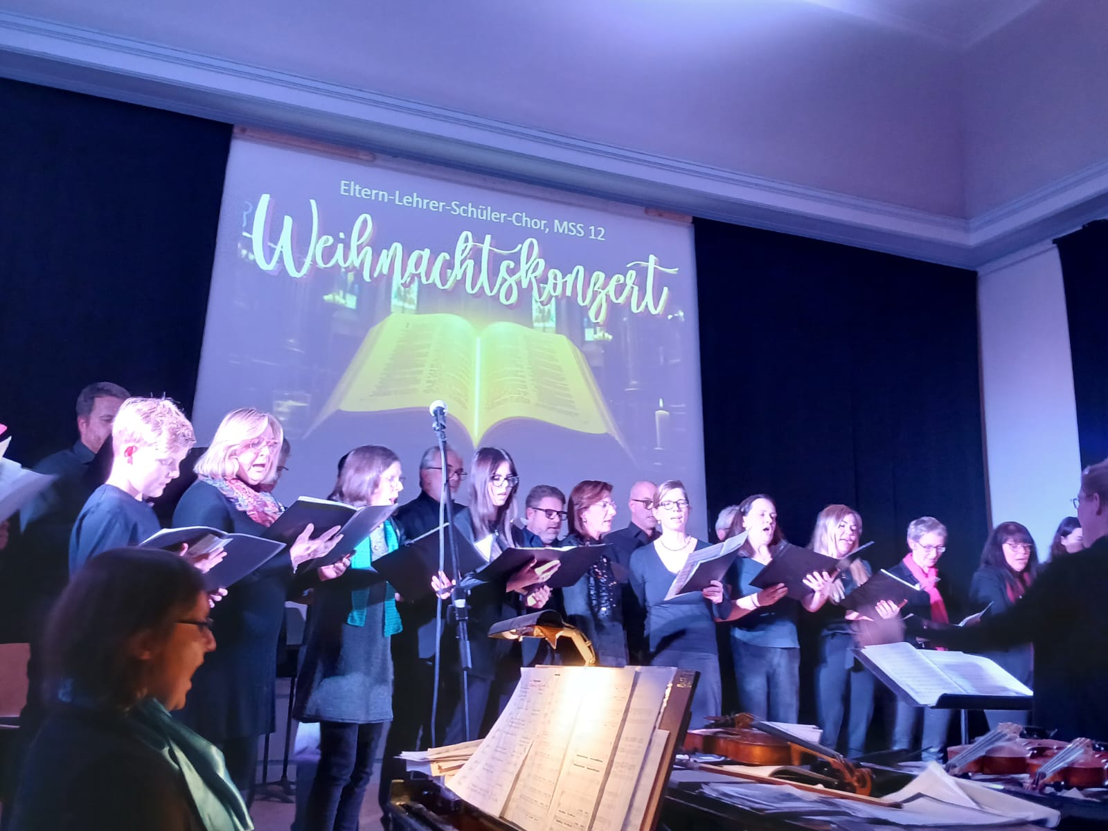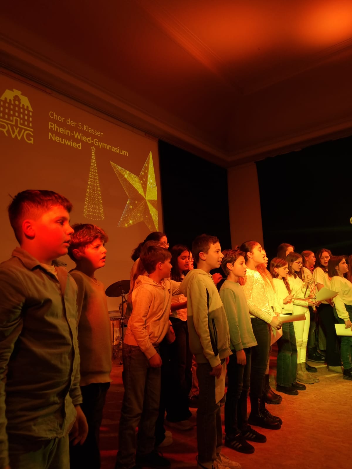 Mit Mitwirkung der Schülerinnen und Schüler des Musikgrundkurses der MSS 12 gab der Eltern-Schüler-Lehrer-Chor sowohl „Salmo 150“ und „Song of Mary“ zum Besten. Ein sehr persönlicher und nachdenklicher Moment entstand durch das selbst geschriebene Gedicht von Julia Günther, das dem Abend eine ganz eigene Tiefe verlieh. Die Bläser-AG begeisterte mit „Deck the Hall“, einem „Gospelhits-Medley“ und „We Wish You a Merry Christmas“, während der Chor der 5. Klassen mit „Stern über Bethlehem“ und „Hört der Engel helle Lieder“ zeigte, wie viel Freude gemeinsames Singen bereiten kann.