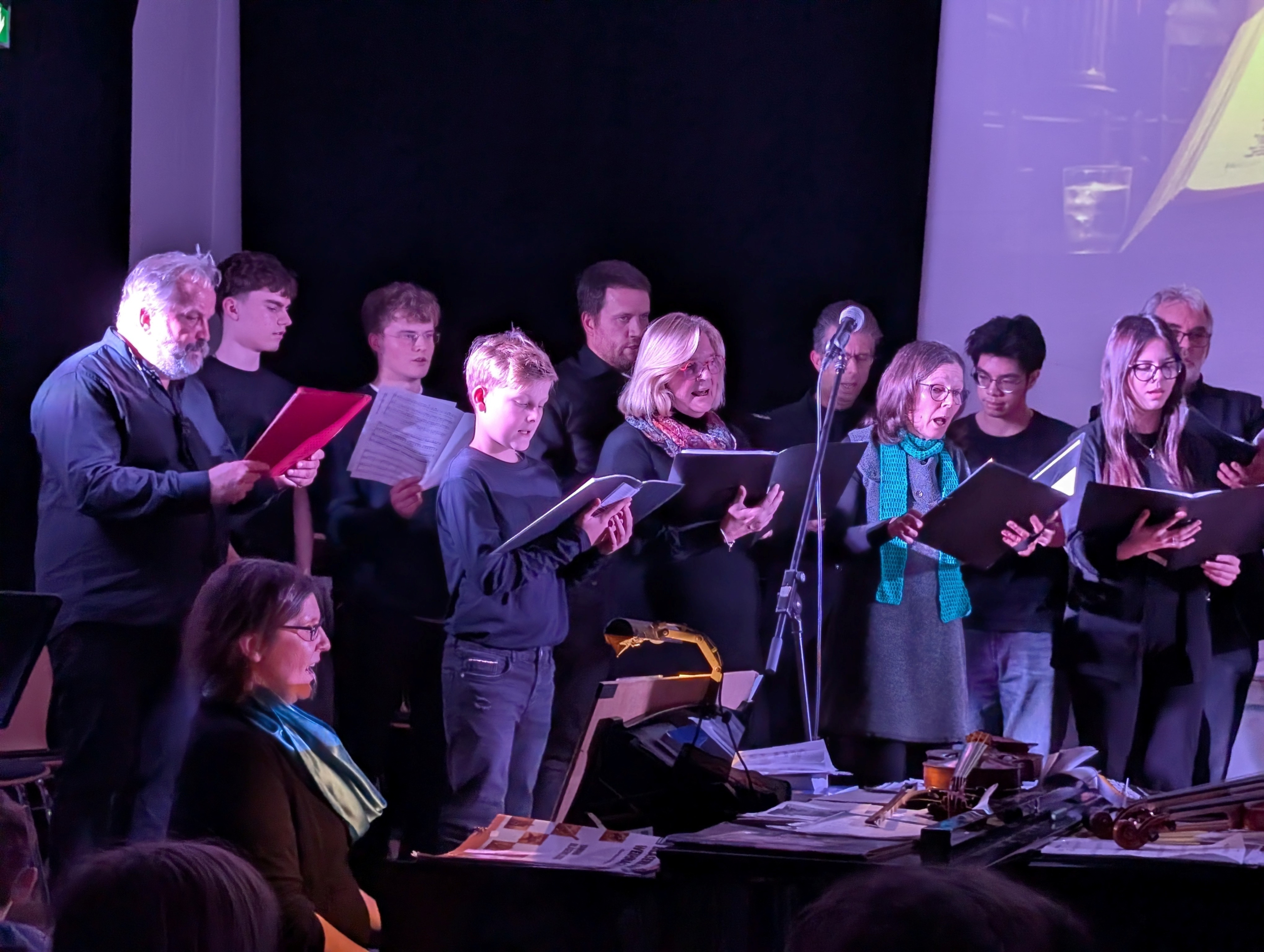 Auch beim gemeinsamen Stück „Vois sur ton chemin“ zeigten die Beteiligten, wie harmonisch Zusammenarbeit gelingen kann: Chor, Musical-AG, der MSS-Musikgrundkurs, Instrumentalistinnen und Instrumentalisten sowie das Klavier wirkten eindrucksvoll zusammen.