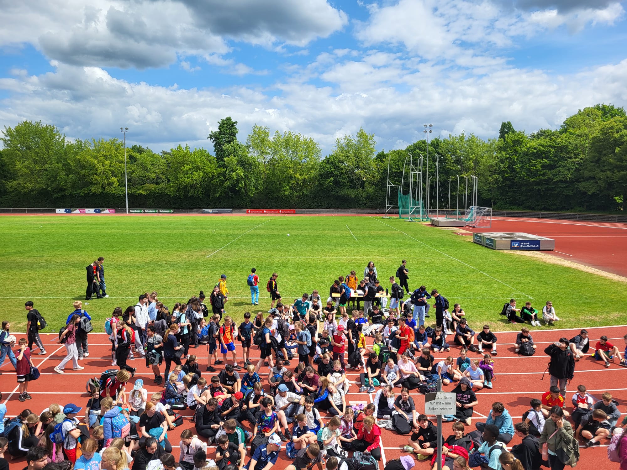 Das Sportfest wurde mit einer Begrüßung durch unseren Schulleiter Herrn Zender eröffnet. Die Organisation lag in den bewährten Händen von Frau Schmidt und Frau Göbel, denen ein großes Dankeschön gebührt. Auch Herr Kneib ließ es sich nicht nehmen, noch einmal persönlich vorbeizuschauen und kümmerte sich zuverlässig um die technische Auswertung der Ergebnisse.
